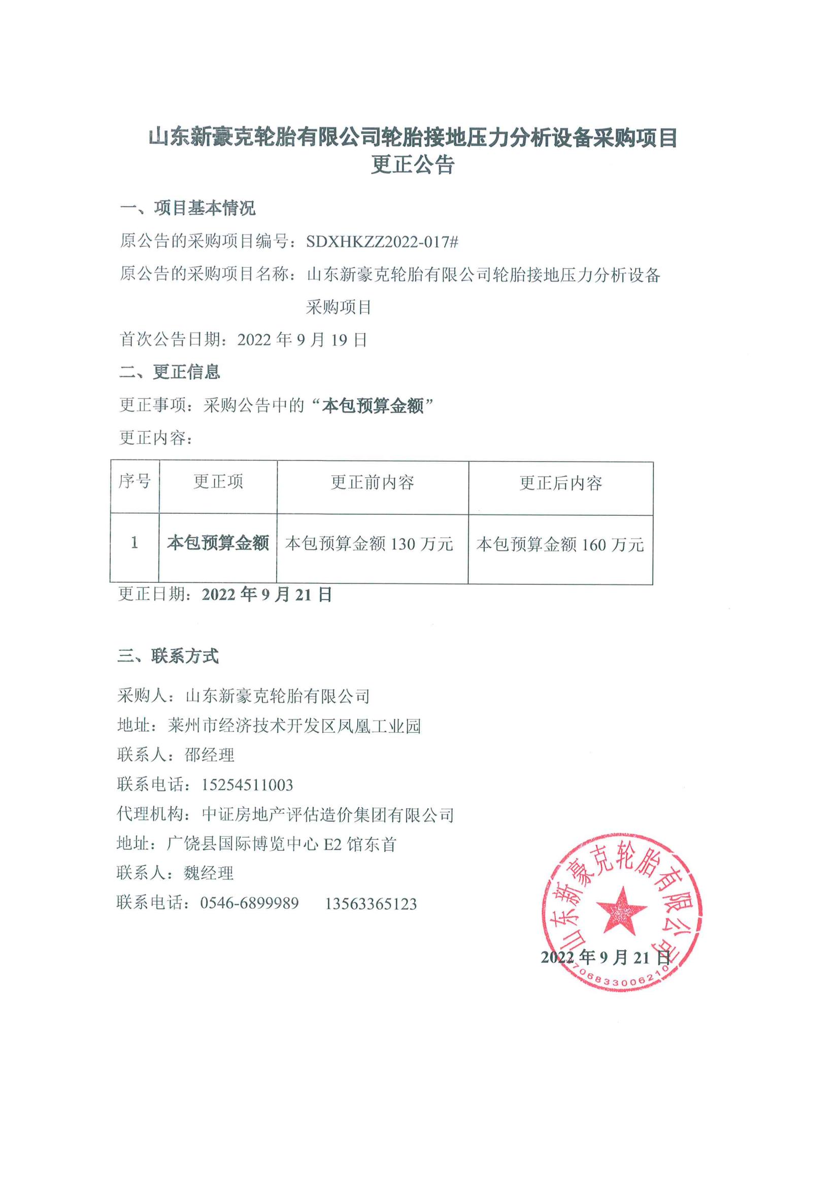 山东新豪克轮胎有限公司轮胎接地压力分析设备采购项目 竞争性磋商公告